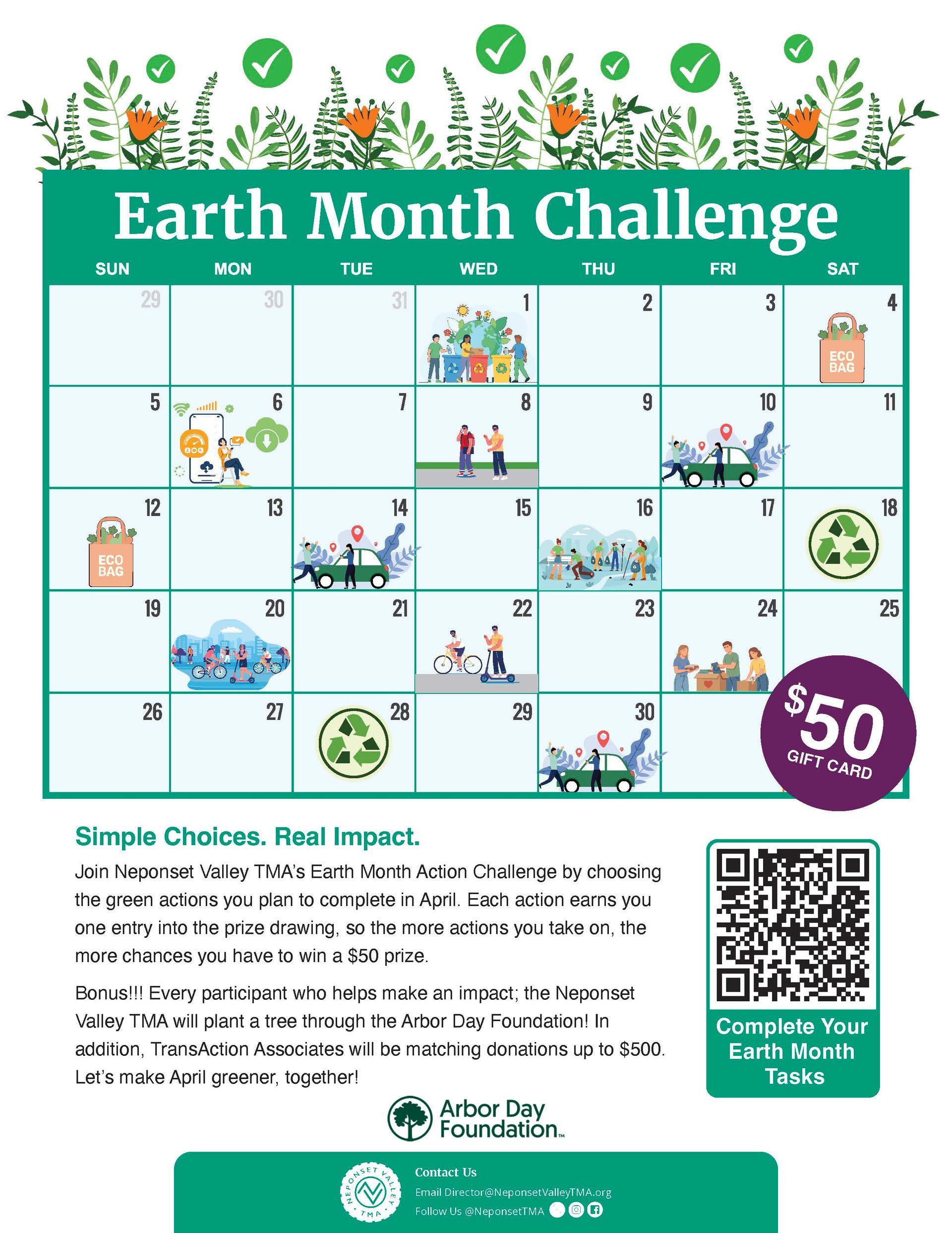Join Neponset Valley TMA’s Earth Month Action Challenge by choosing