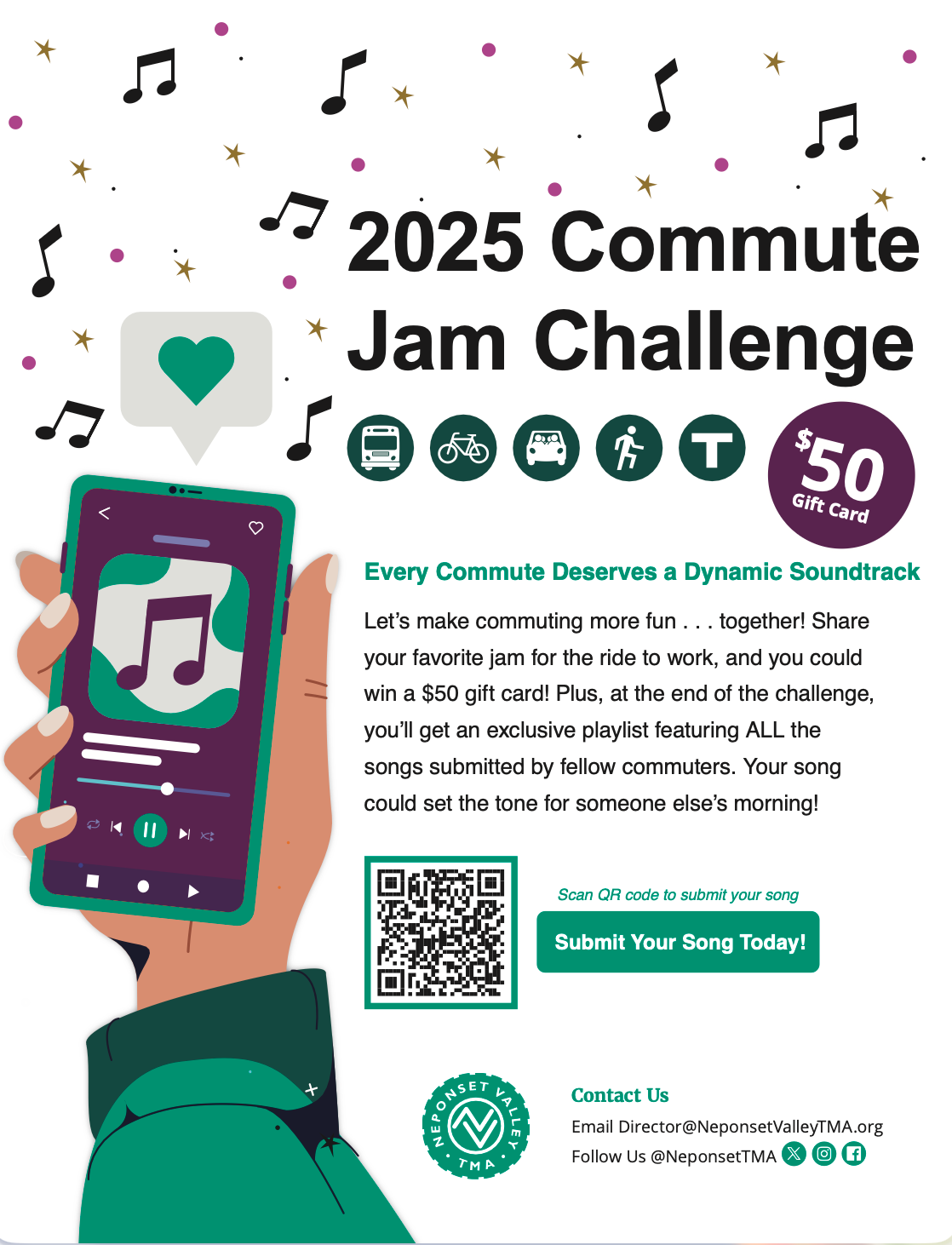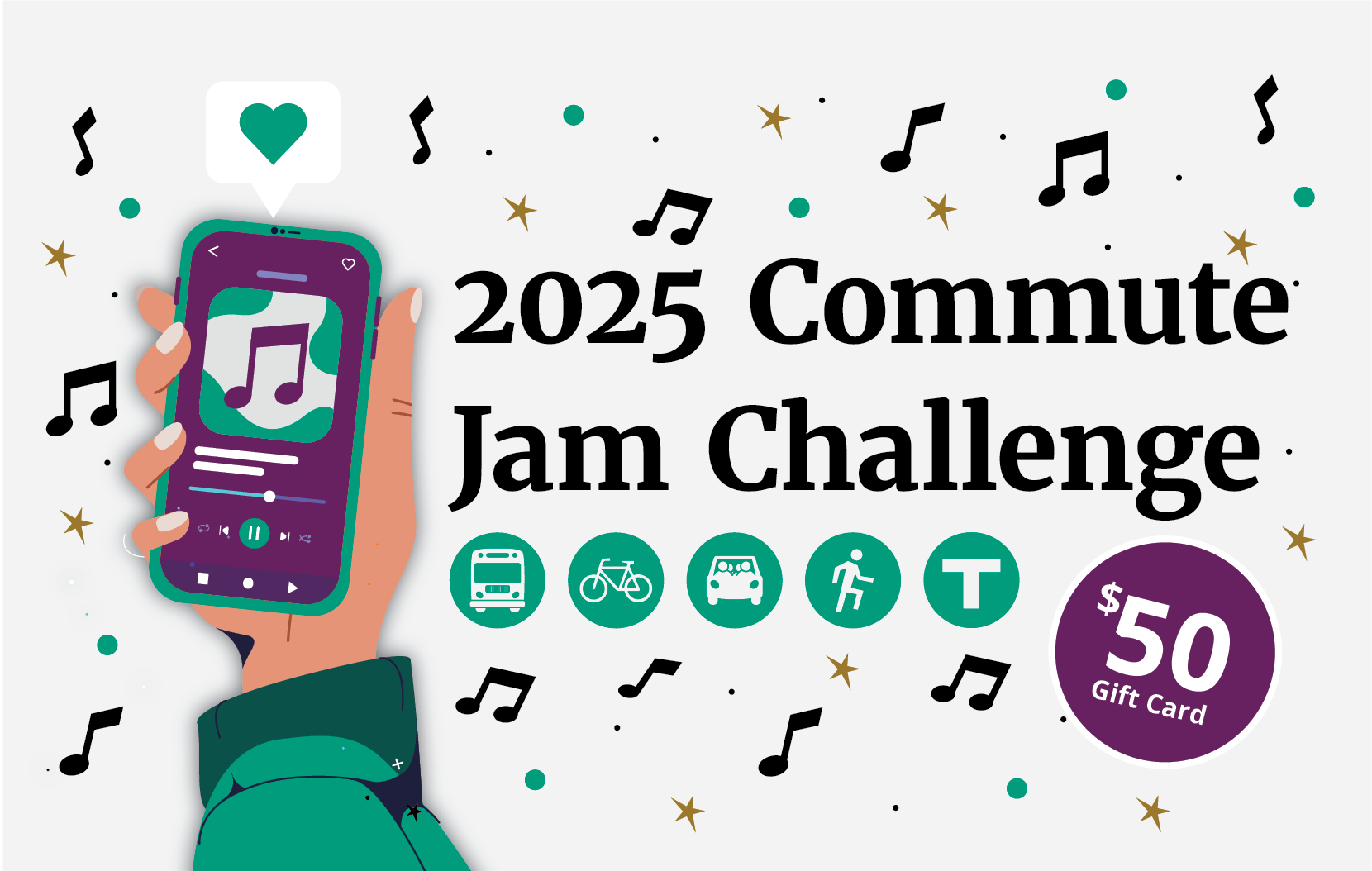 Let’s make commuting more fun... together! Share your favorite jam for the ride to work, and you could win a $50 gift card! Plus, at the end of the challenge, you’ll get an exclusive playlist featuring ALL the songs submitted by fellow commuters. Your song could set the tone for someone else’s morning!