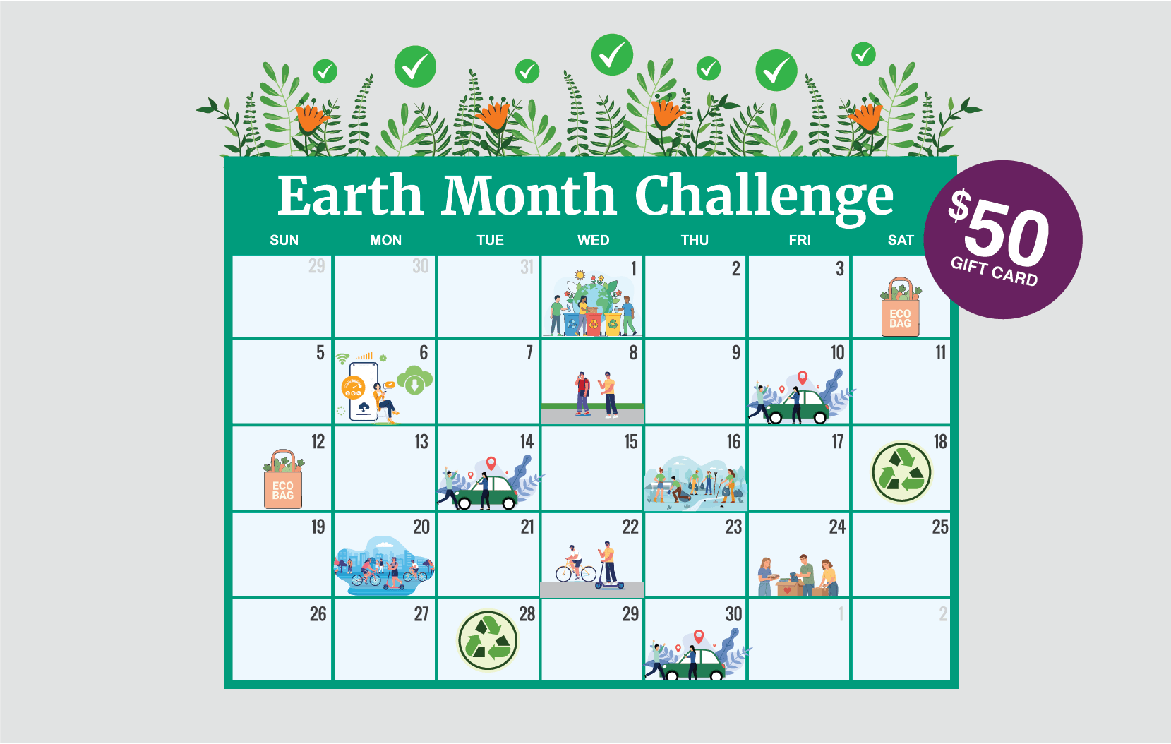 the green actions you plan to complete in April. Each action earns you one entry into the prize drawing, so the more actions you take on, the